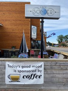 Cafe Sonder sits on the corner of Chicago and Oneida Street in downtown Minocqua. There is ample patio seating where you can watch the hustle and bustle of the town. Stepping inside feels like walking into a Capitol Hill coffee shop in Seattle. The smell of freshly baked goods and espresso welcomes you as well as the friendly baristas. I was immediately struck by how well the staff worked together as a team. If you’ve worked in the service industry, you know how quickly your co-workers become like family.