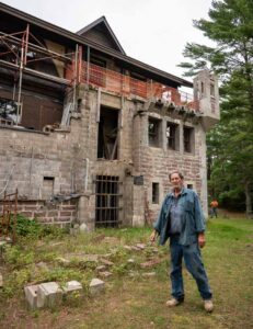 When Pete returned to the States, he gave up career opportunities in computers and became a licensed electrician. He studied his father’s engineering books and drew plans based on the rectilinear English style of castle. In 1987, he finally was able to begin the process and spent five years clearing the land he inherited, building the road and installing the septic system. Like castles of old, the building process has taken decades, more than 30 years thus far.